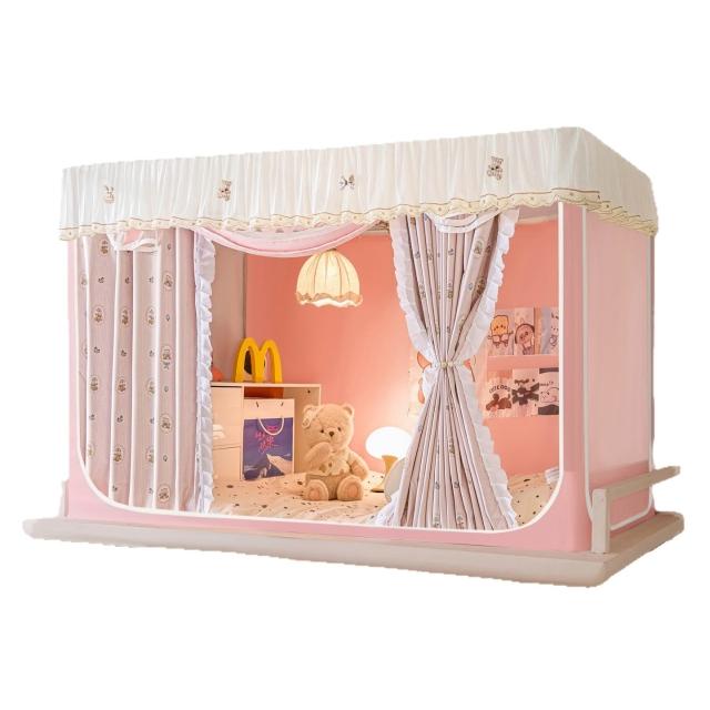 全遮光蚊帳學生宿舍蚊帳三開門蚊帳水溶花邊上下鋪卡通少女風床簾 80a