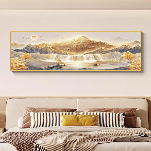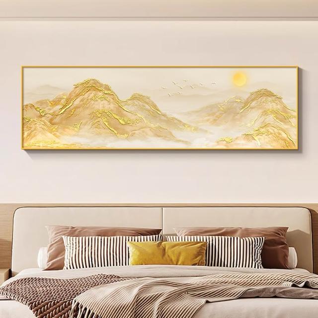日照金山床頭裝飾畫主臥房間高級感掛畫背有靠山客廳臥室輕奢壁畫 816