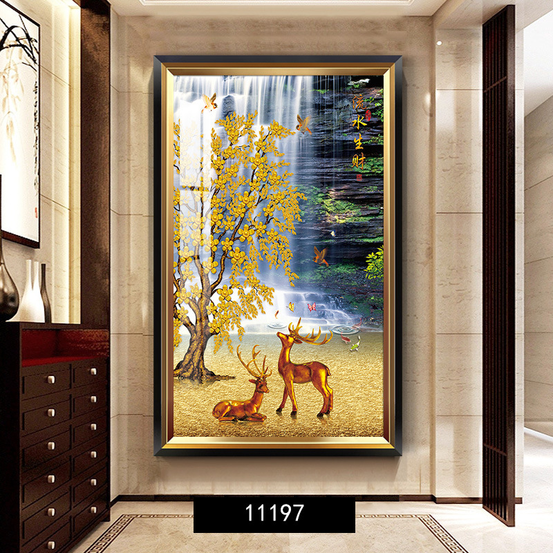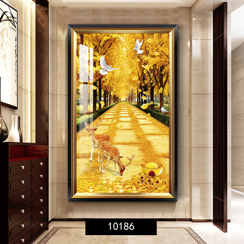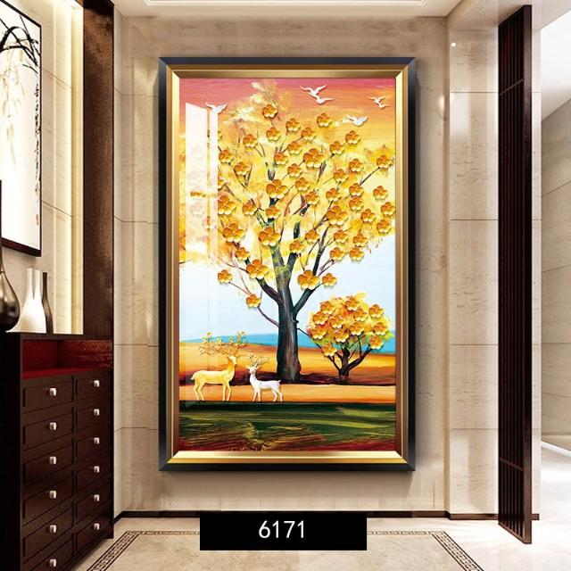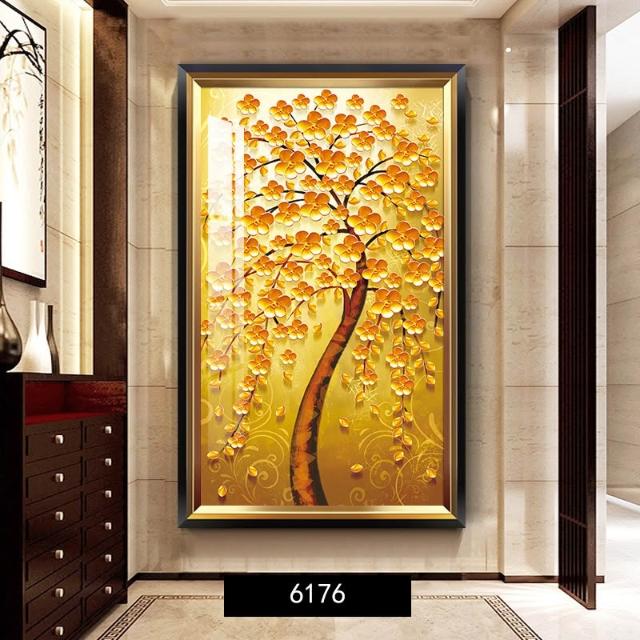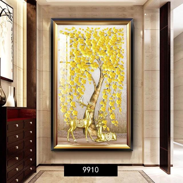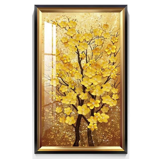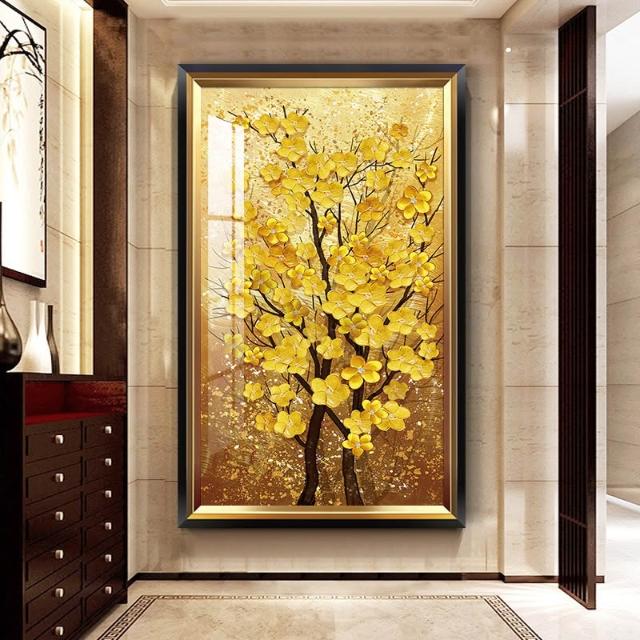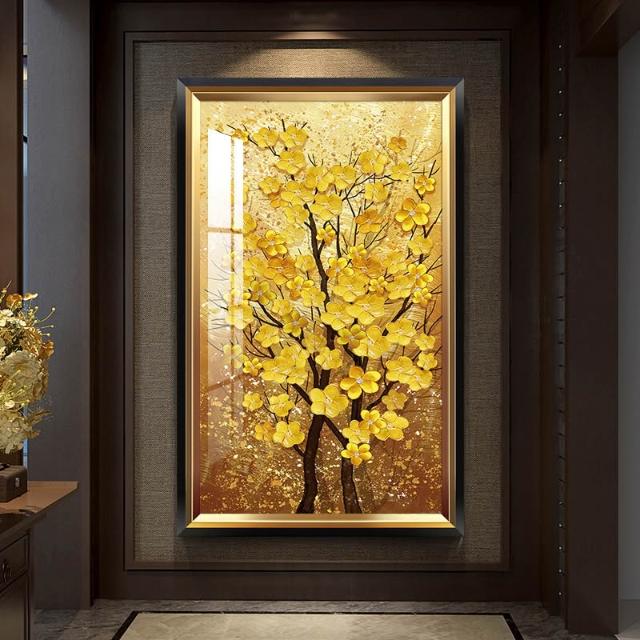 黃金樹 入戶玄關裝飾畫美式輕奢客廳走廊盡頭壁畫大氣金錢樹掛畫 744