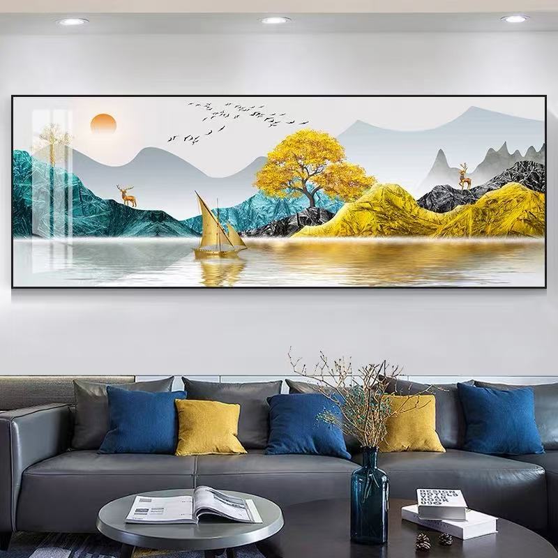 橫板壁畫背有靠山掛畫現代客廳沙發裝飾畫新中式茶室山水畫 dc5