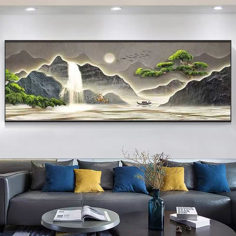 橫板壁畫背有靠山掛畫現代客廳沙發裝飾畫新中式茶室山水畫 dc5