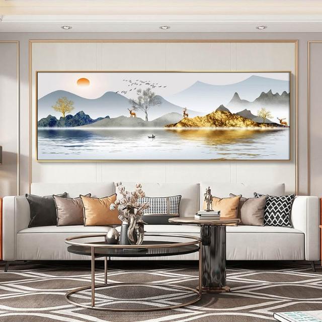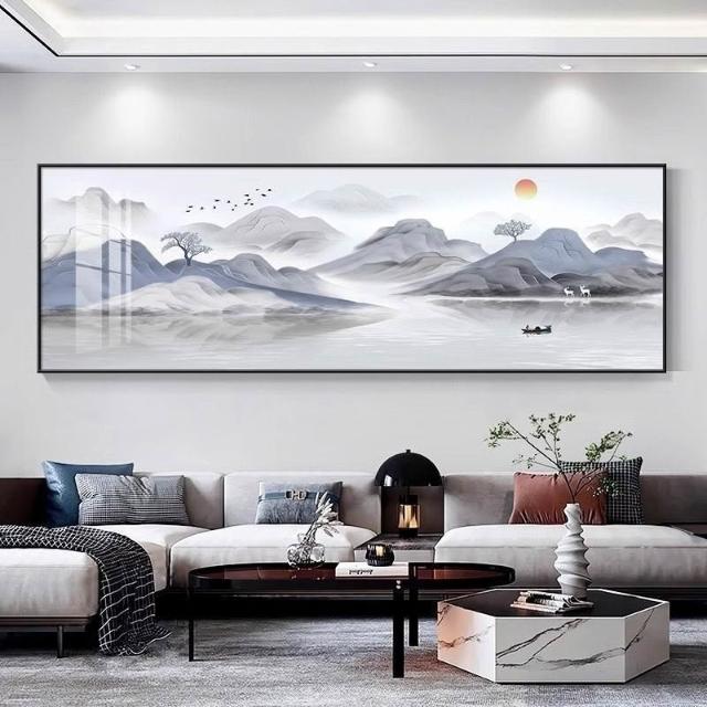 橫板壁畫背有靠山掛畫現代客廳沙發裝飾畫新中式茶室山水畫 dc5