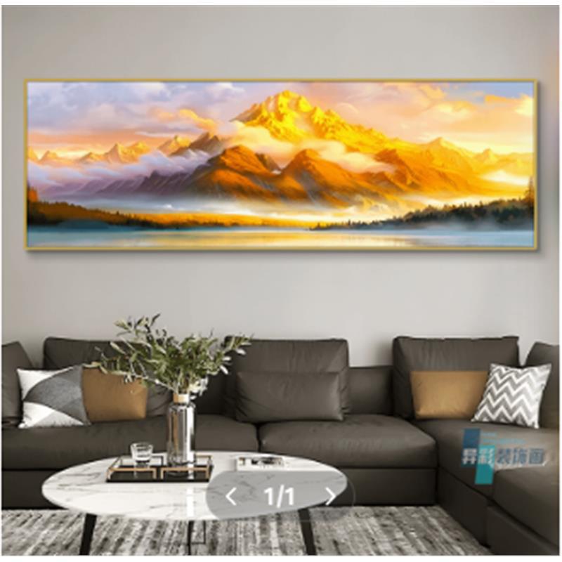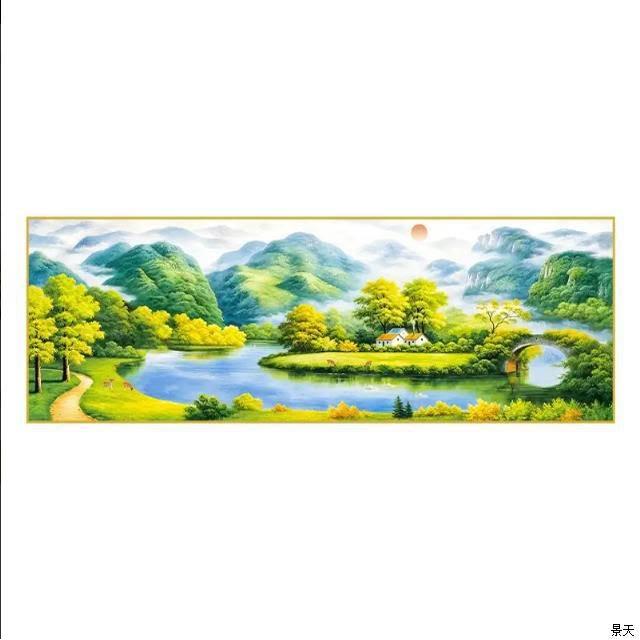 流水生財掛畫東墻客廳沙發背景墻裝飾畫旭日東升畫八方聚財山水畫 b7e