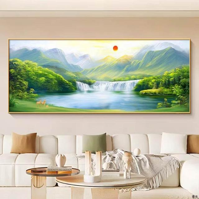 流水生財掛畫東墻客廳沙發背景墻裝飾畫旭日東升畫八方聚財山水畫 b7e
