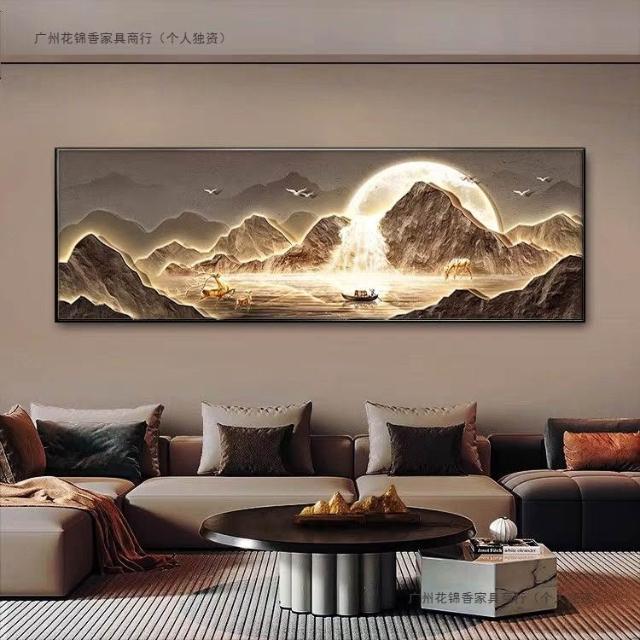 聚寶盆風水掛畫客廳裝飾畫輕奢沙發後背景墻日照金山大氣山水壁畫 33a