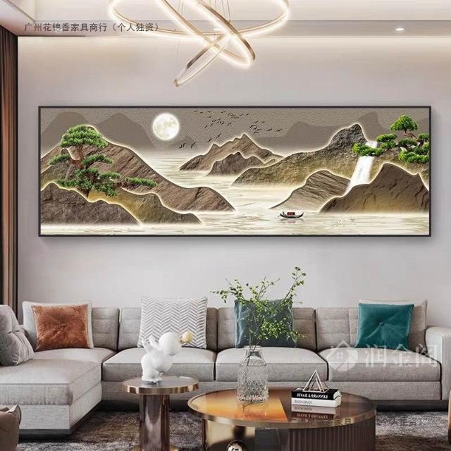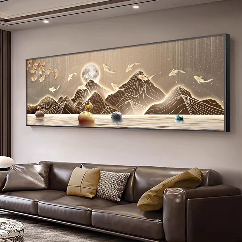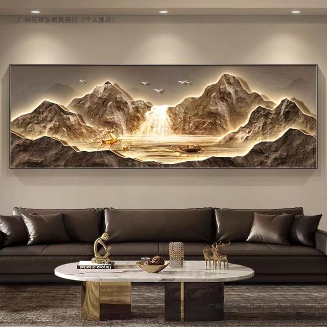 聚寶盆風水掛畫客廳裝飾畫輕奢沙發後背景墻日照金山大氣山水壁畫 33a