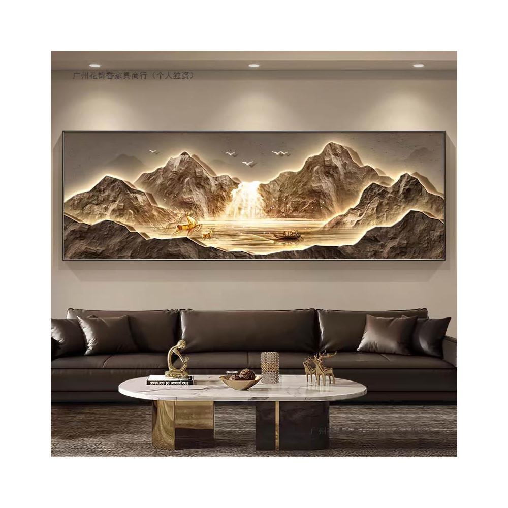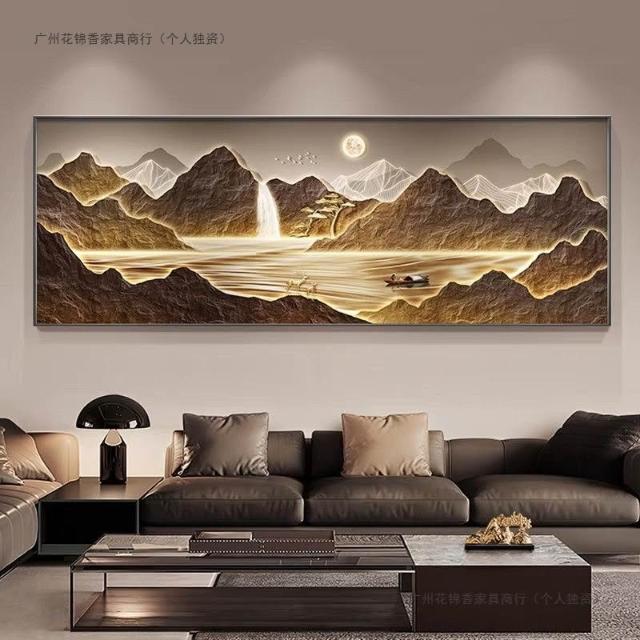 聚寶盆風水掛畫客廳裝飾畫輕奢沙發後背景墻日照金山大氣山水壁畫 33a