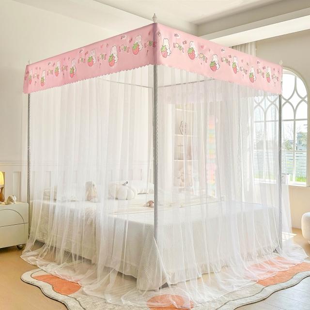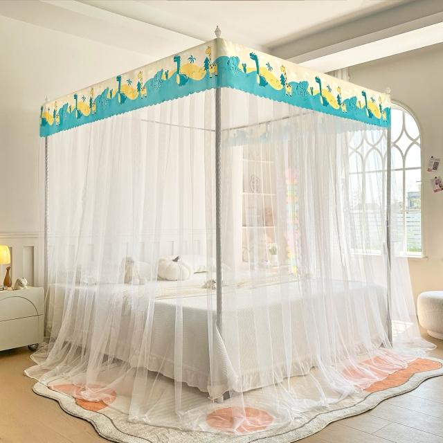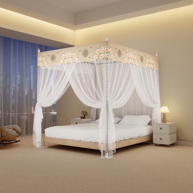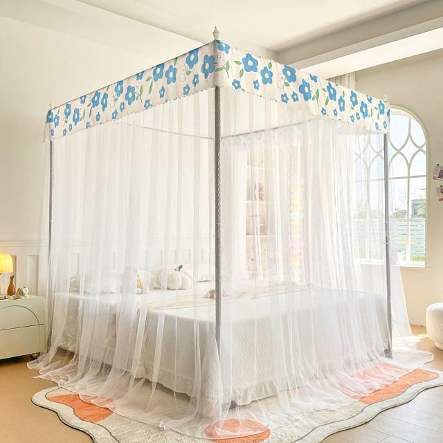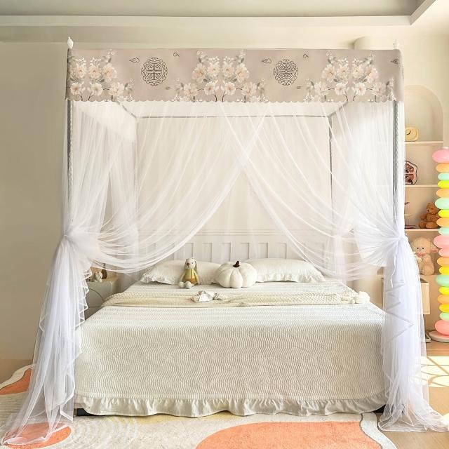 2026新款宮廷落地印花布帳沿網紗款蚊帳三開門加密帳紗床上用品 7d8