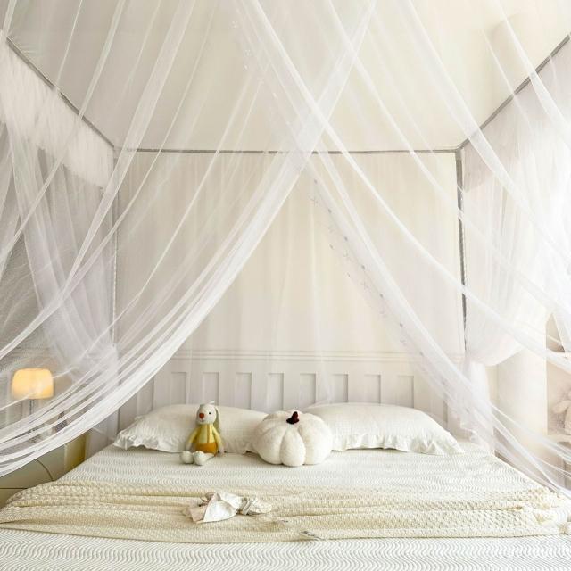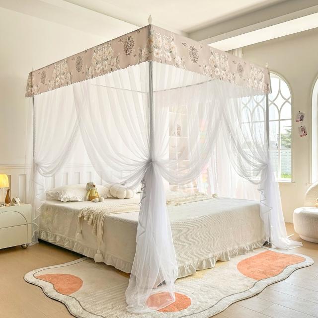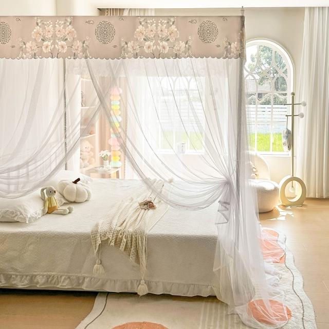 2026新款宮廷落地印花布帳沿網紗款蚊帳三開門加密帳紗床上用品 7d8