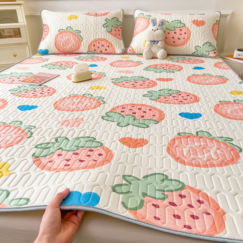 乳膠涼席夏季冰絲席子可機洗三件套學生宿舍單人冬夏兩用 11b