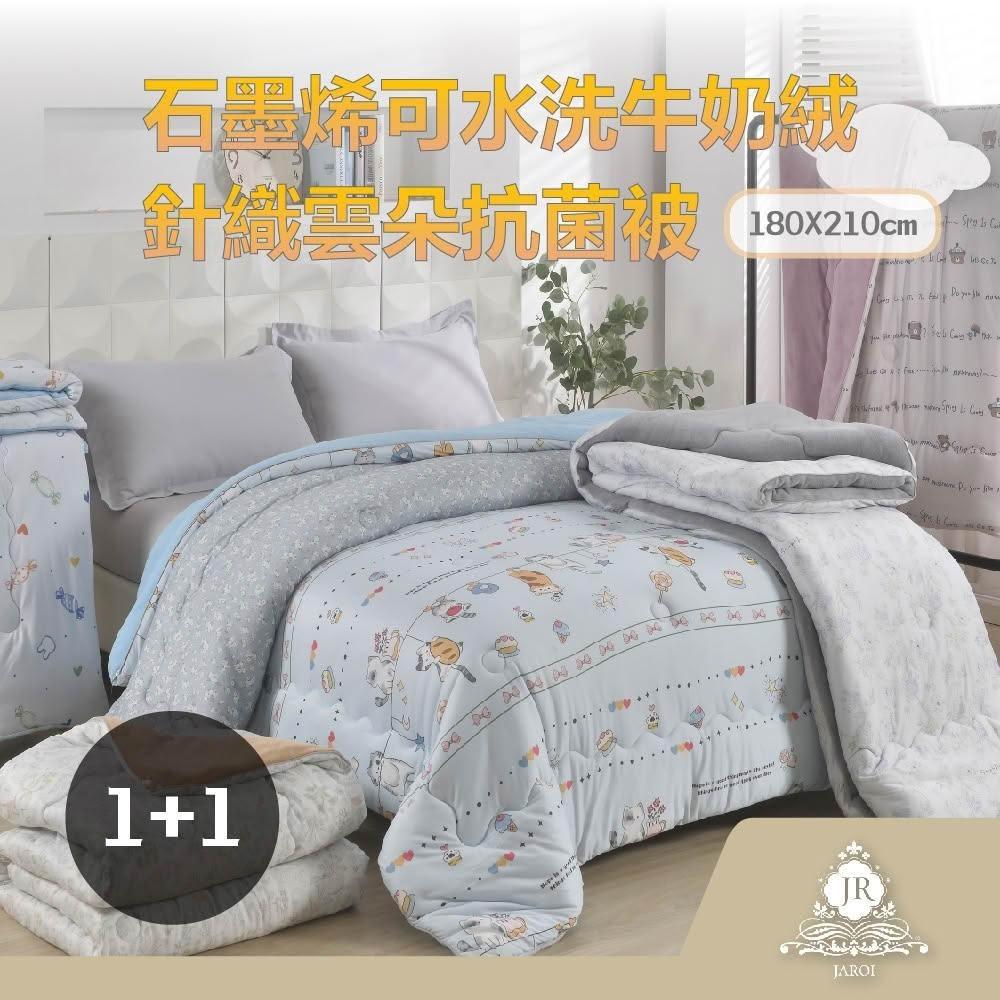 JAROI【買1送1】石墨烯可水洗牛奶絨針織雲朵抗菌被180X210cm