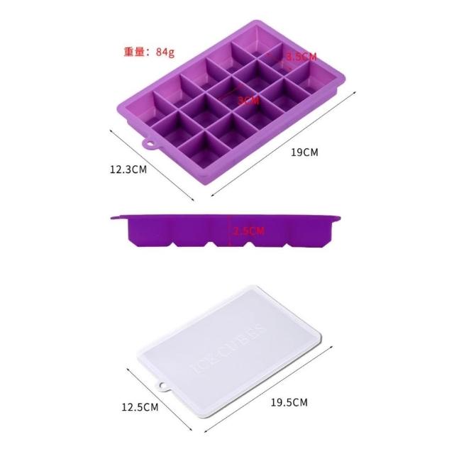 食品級矽膠冰塊盒15格 按壓式冰塊盒 附蓋製冰盒 附蓋不怕食物串味 矽膠讓冰塊好取出