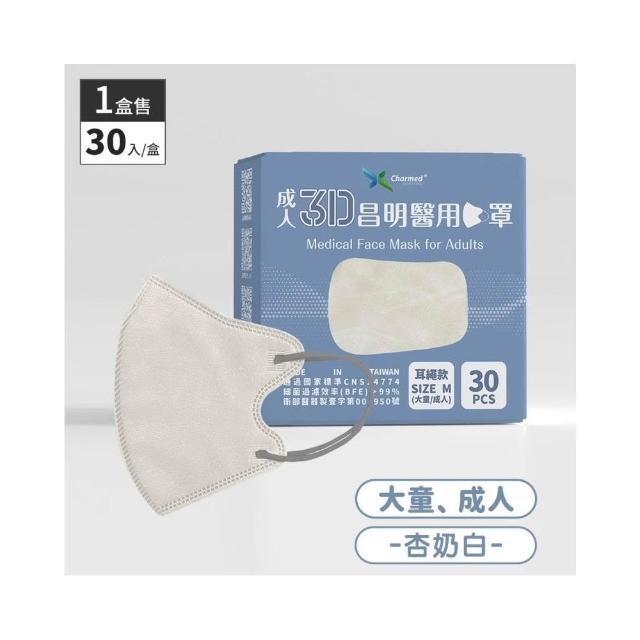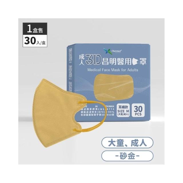 成人3D立體口罩(M/小顏/寬扁耳繩/無鼻樑壓條) 30入/盒 昌明生技 醫療口罩