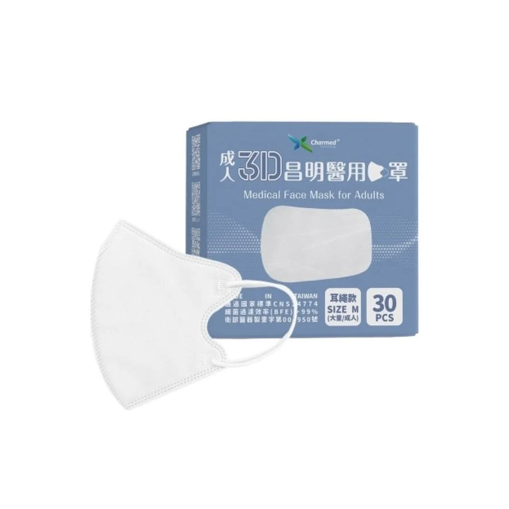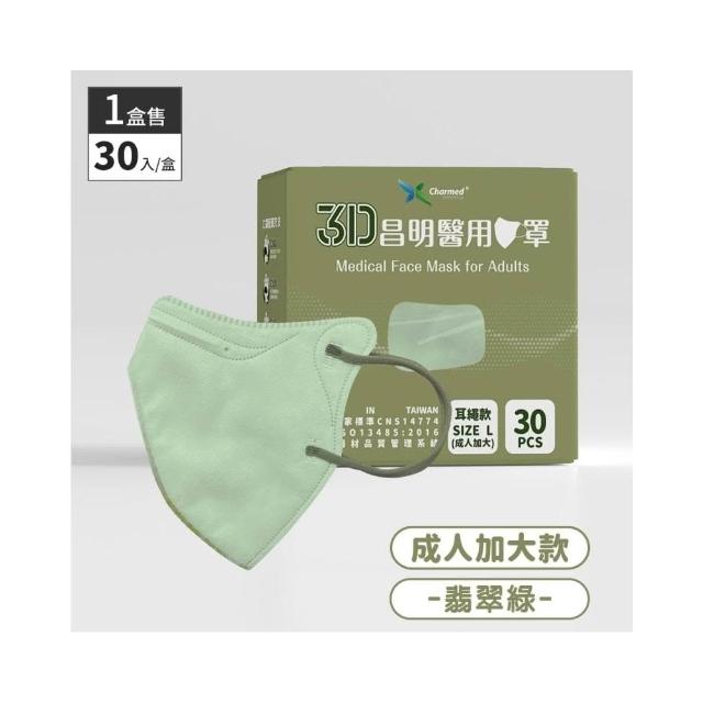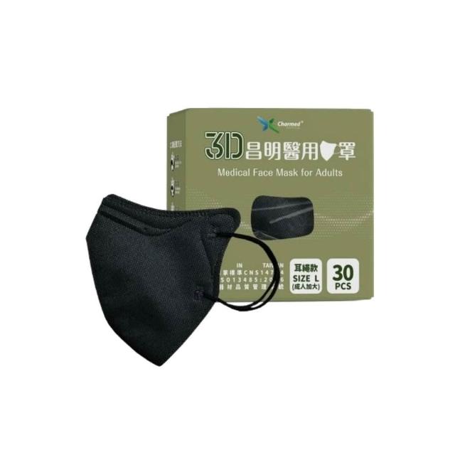 成人3D立體口罩(L/加大/寬扁耳繩/有鼻樑壓條) 30入/盒 昌明生技 醫療口罩