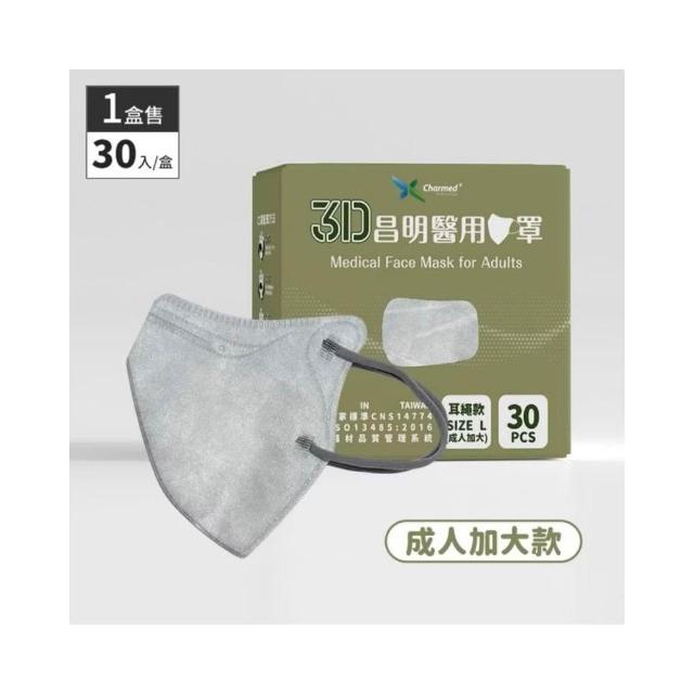 成人3D立體口罩(L/加大/寬扁耳繩/有鼻樑壓條) 30入/盒 昌明生技 醫療口罩