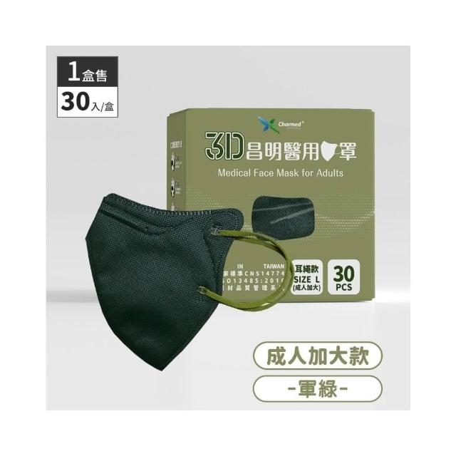 成人3D立體口罩(L/加大/寬扁耳繩/有鼻樑壓條) 30入/盒 昌明生技 醫療口罩