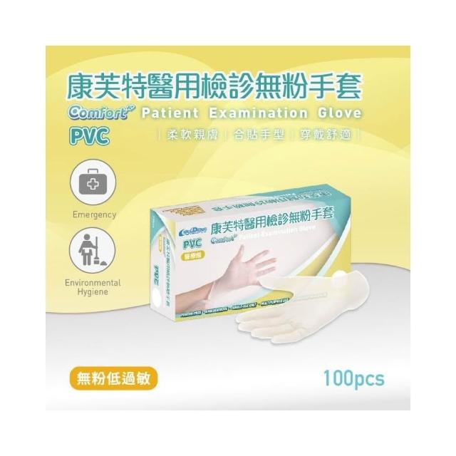 康芙特 醫用檢診無粉手套(100入/盒) PVC手套 透明無粉 檢診手套 醫療手套