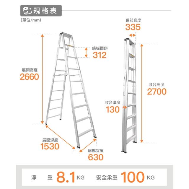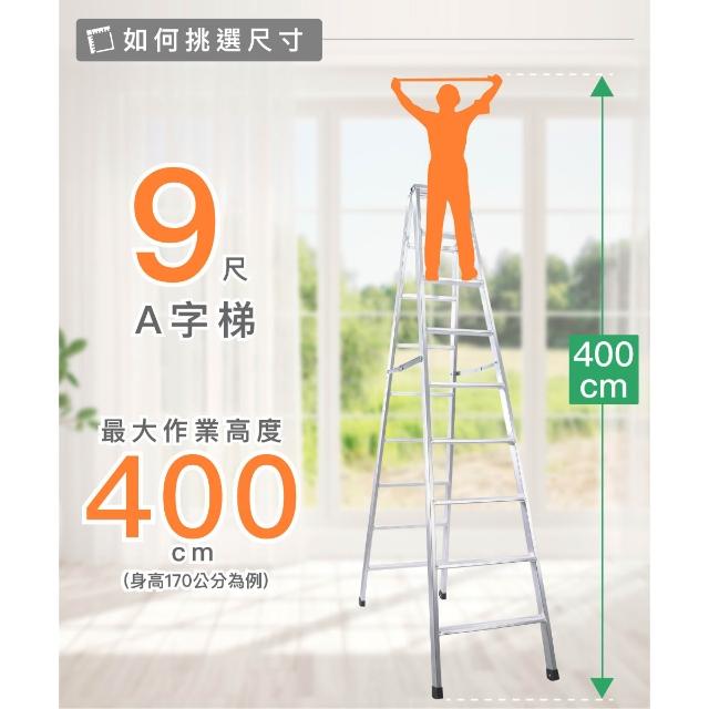 輕便型焊接A字鋁梯 9尺「台灣精品標章 精品梯」/輕工業/工作梯/馬椅梯/A字梯/家用梯
