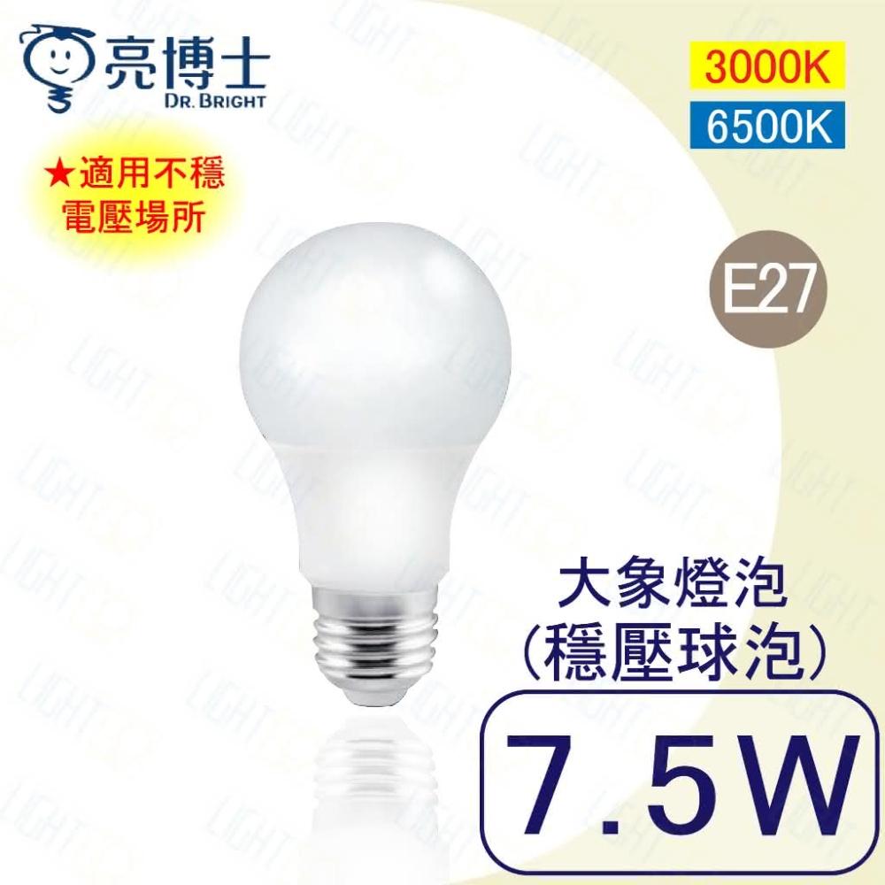 亮博士LED 7.5W球泡燈 E27 A55 大象燈泡 穩壓球泡 居家球泡 ( 黃光 白光 ) 保固一年