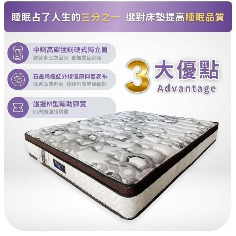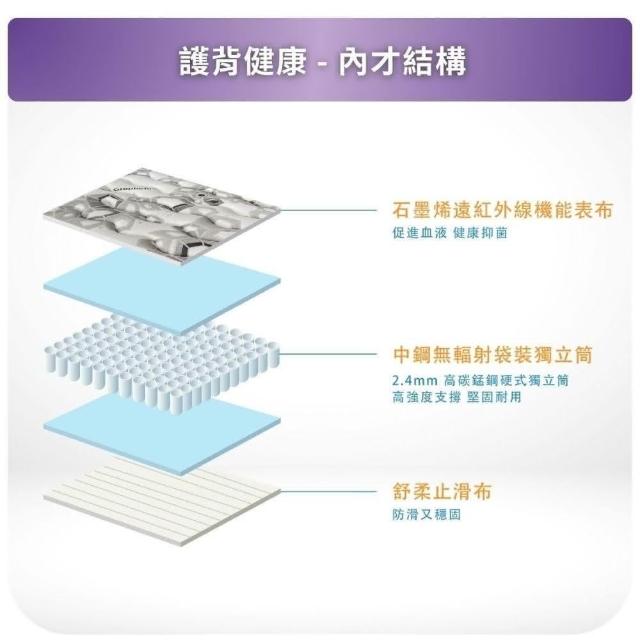 愛傢舒眠館護背健康-石墨烯遠紅外線三線硬式獨立筒床墊單人加大3.5尺