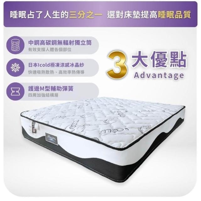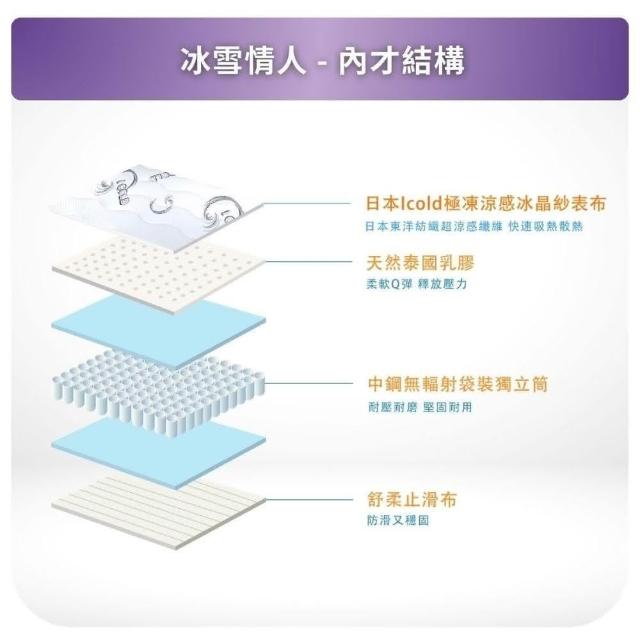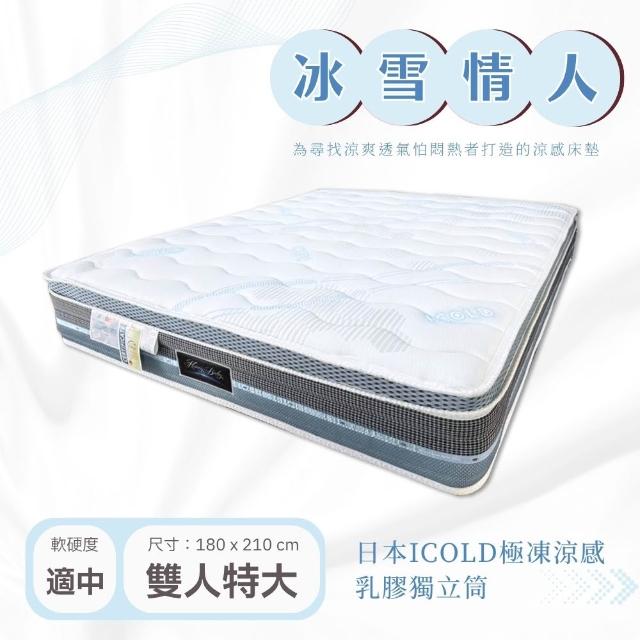 愛傢舒眠館冰雪情人-日本ICOLD極凍涼感冰晶乳膠獨立筒床墊雙人特大6*7尺