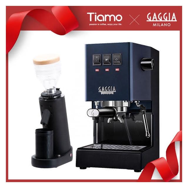 TiamoGAGGIA CLASSIC Pro 專業半自動咖啡機 - 升級版 110V 經典藍(HG0195BL)+TIAMO K40R 錐刀磨豆機(HG1559BK)