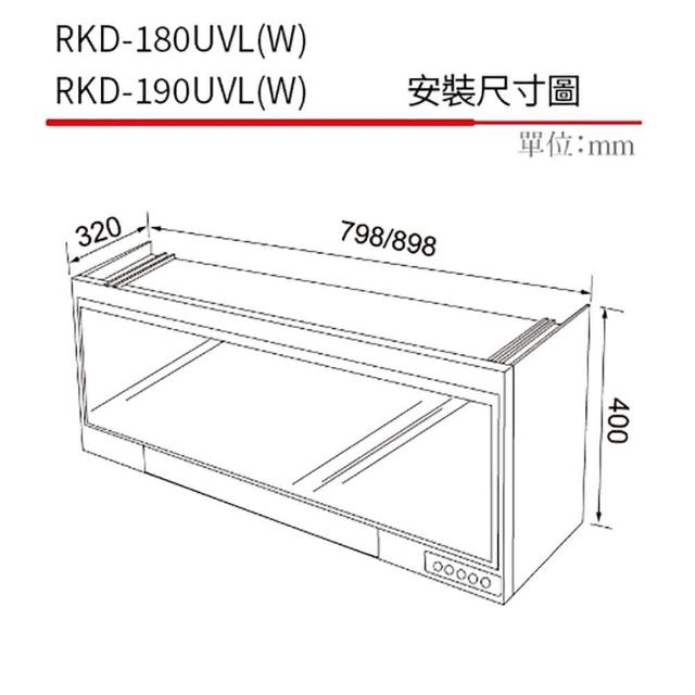 Rinnai 林內 懸掛式 UV 殺菌烘碗機 RKD-180UVL(W) 含運不安裝