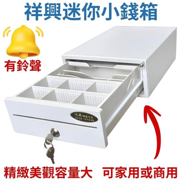 祥興小型收銀錢箱 小型迷你收銀箱 手動按鈕附鈴聲和鑰匙 也可外接POS機 出單機 錢箱 型號:20型 祥興錢箱