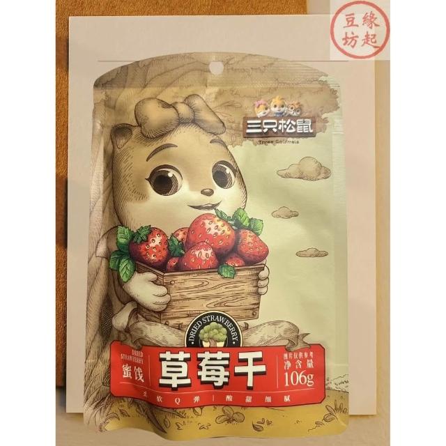 三隻松鼠果乾系列 草莓果乾 106g 夾鏈式包裝 開袋即食 網紅休閒小零食