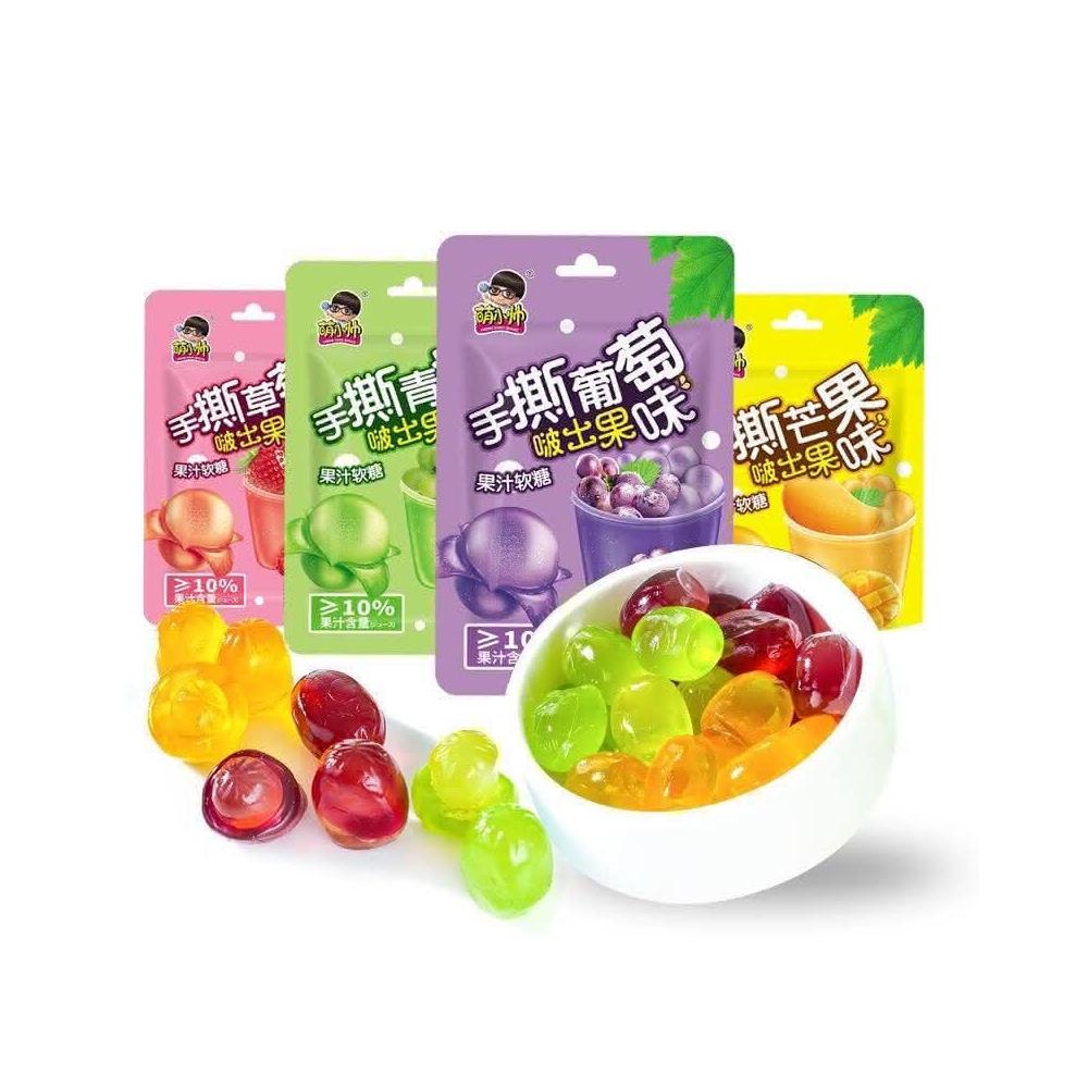 萌小帥 5包/組 紫皮葡萄/青提葡萄/草莓/芒果口味 夾心剝皮軟糖 開袋即食 網紅零食 獨立小包裝