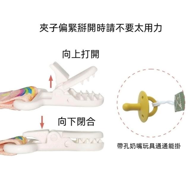 - 牢牢夾住衣領或玩具