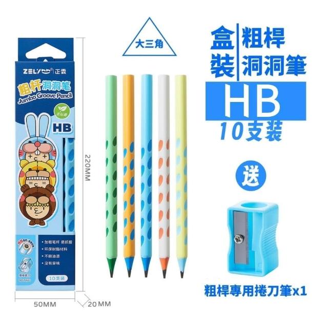 三角洞洞鉛筆 粗桿 2B/HB 10入裝 | 三角型筆桿鉛筆 鉛筆 洞洞筆 文具用品 大三角筆 辦公用品