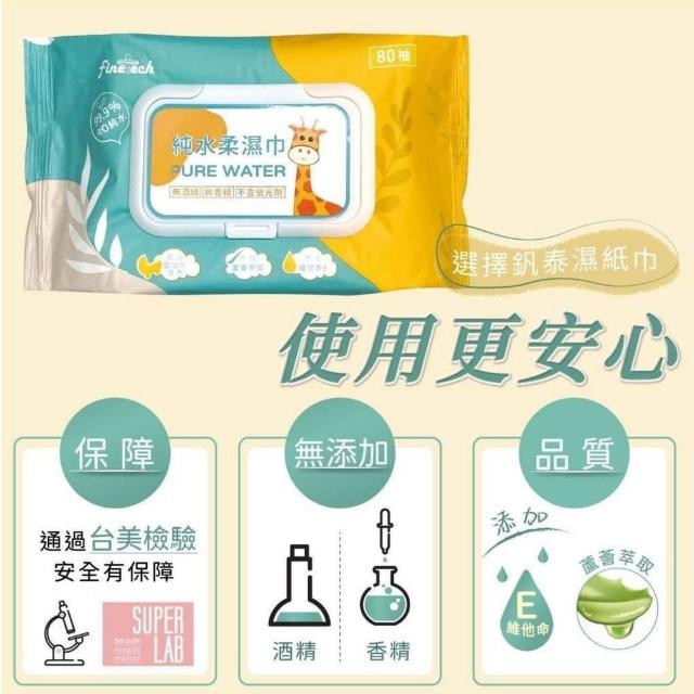 Finetech 釩泰長頸鹿濕紙巾80抽 嬰幼兒 成人 濕紙巾 添加蘆薈萃取 純水濕紙巾 潔膚濕巾 有蓋80抽 10抽 無酒精 無香精
