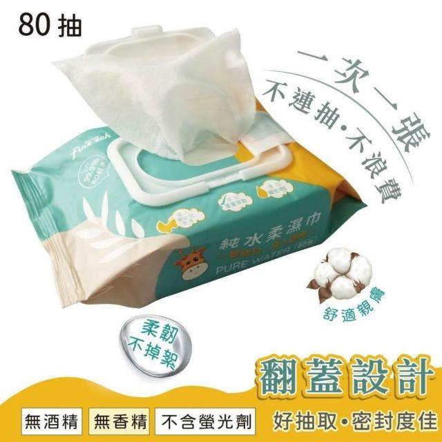 Finetech 釩泰長頸鹿濕紙巾80抽 嬰幼兒 成人 濕紙巾 添加蘆薈萃取 純水濕紙巾 潔膚濕巾 有蓋80抽 10抽 無酒精 無香精