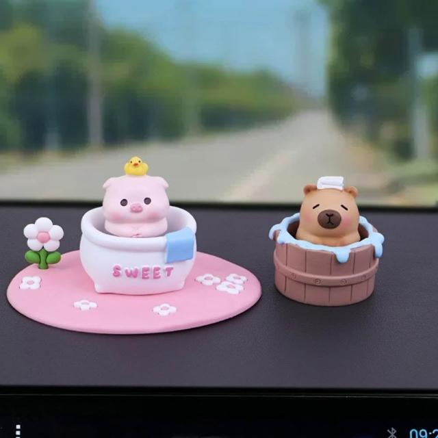 萌寵搖頭擺件|微景觀 卡皮巴拉 水豚 搖頭擺件 桌面裝飾 交換禮物 中控台擺件 辦公室裝飾品 兔子 小豬 舒壓擺件