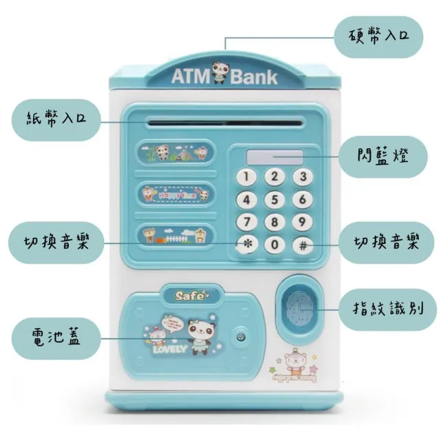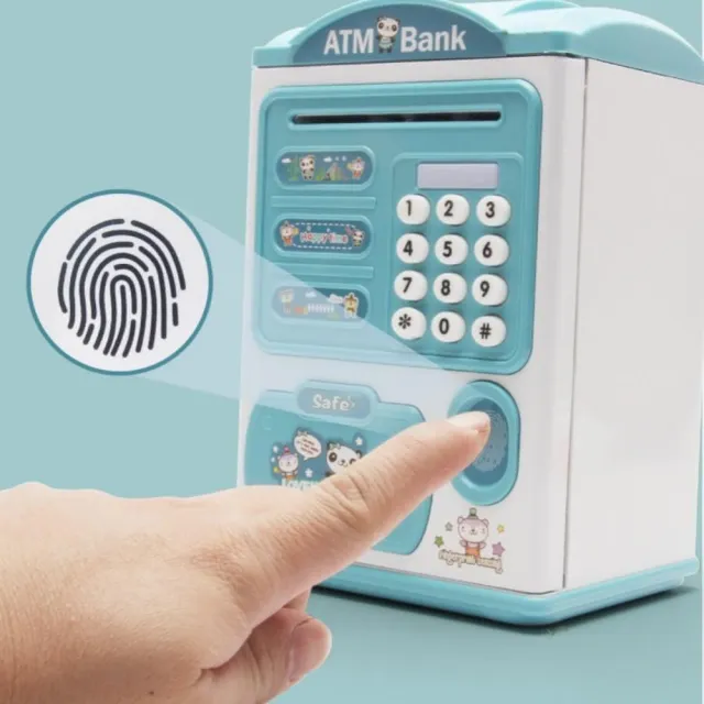 仿真指紋存錢筒|兒童存錢罐 仿真密碼指紋感應開鎖儲錢箱存錢筒 自動捲錢ATM存錢罐 手提存錢罐保險櫃玩具 存錢 撲滿