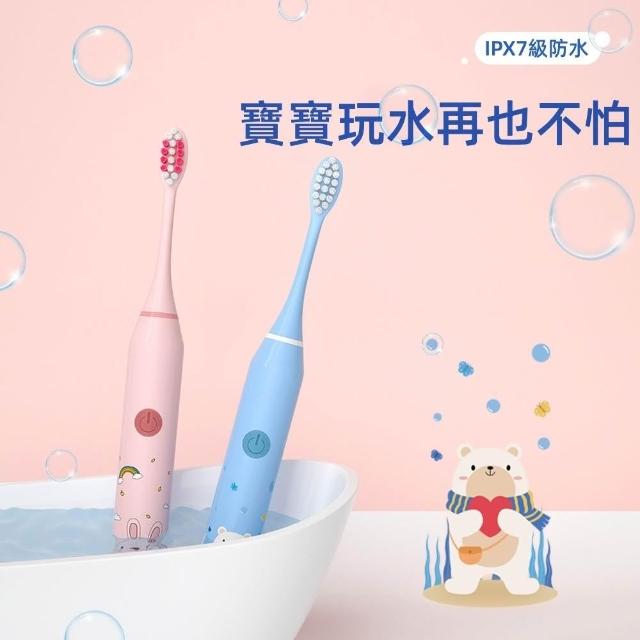 兒童電動牙刷|兒童牙刷 內附4支刷頭 電動牙刷 音波牙刷 寶寶牙刷 充電牙刷 全自動式軟毛電動刷牙 防水
