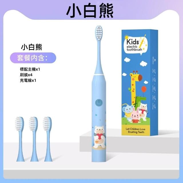 兒童電動牙刷|兒童牙刷 內附4支刷頭 電動牙刷 音波牙刷 寶寶牙刷 充電牙刷 全自動式軟毛電動刷牙 防水