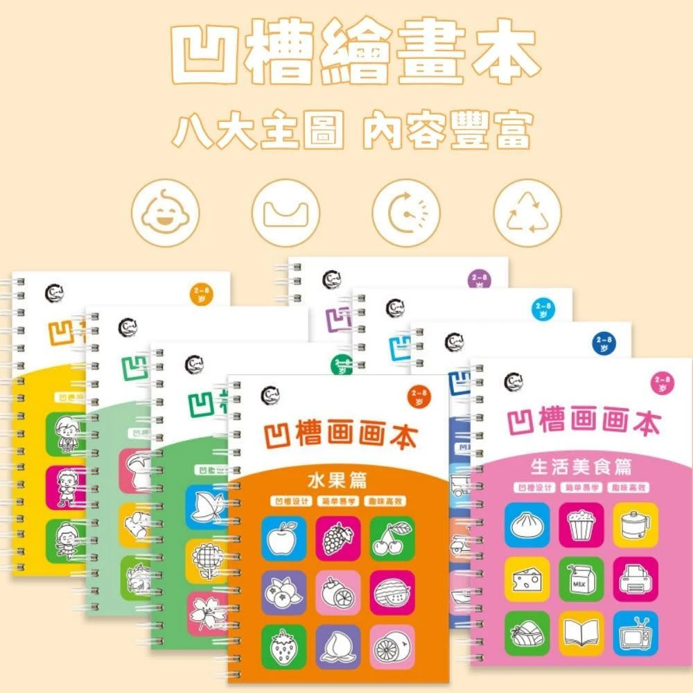 凹槽繪畫套組|一套8本 凹槽繪畫本 幼兒園控筆訓練 幼兒凹槽練字畫本 凹槽繪畫本 兒童繪畫啟蒙本 手繪綫描臨摹畵
