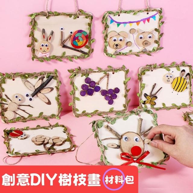 創意DIY樹枝畫材料包|DIY自然原木片畫 原木畫 樹枝畫 DIY材料包 親子手工 手作教材 幼兒園木藝畫框相