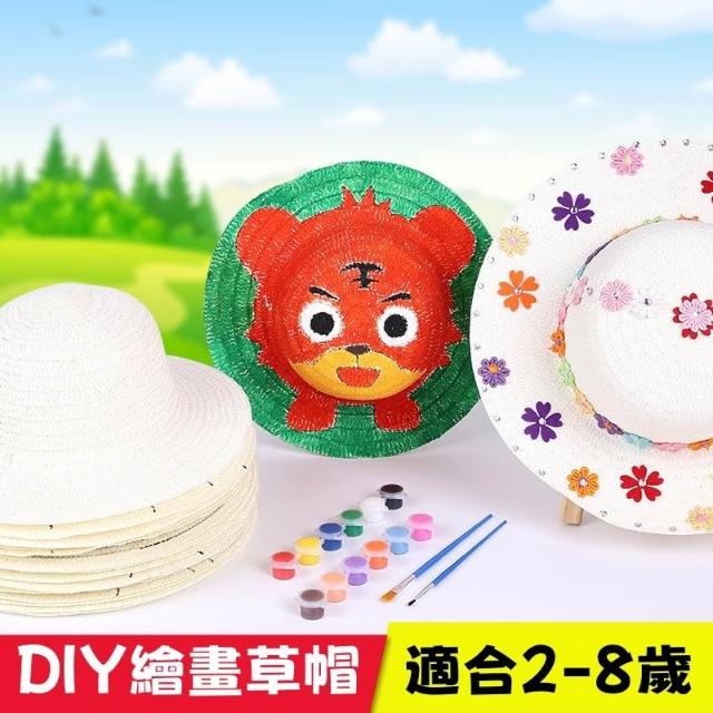 DIY彩繪草帽|兒童彩繪diy帽子 幼兒園著色草帽 DIY繪畫草帽 美勞手作 塗鴉帽子