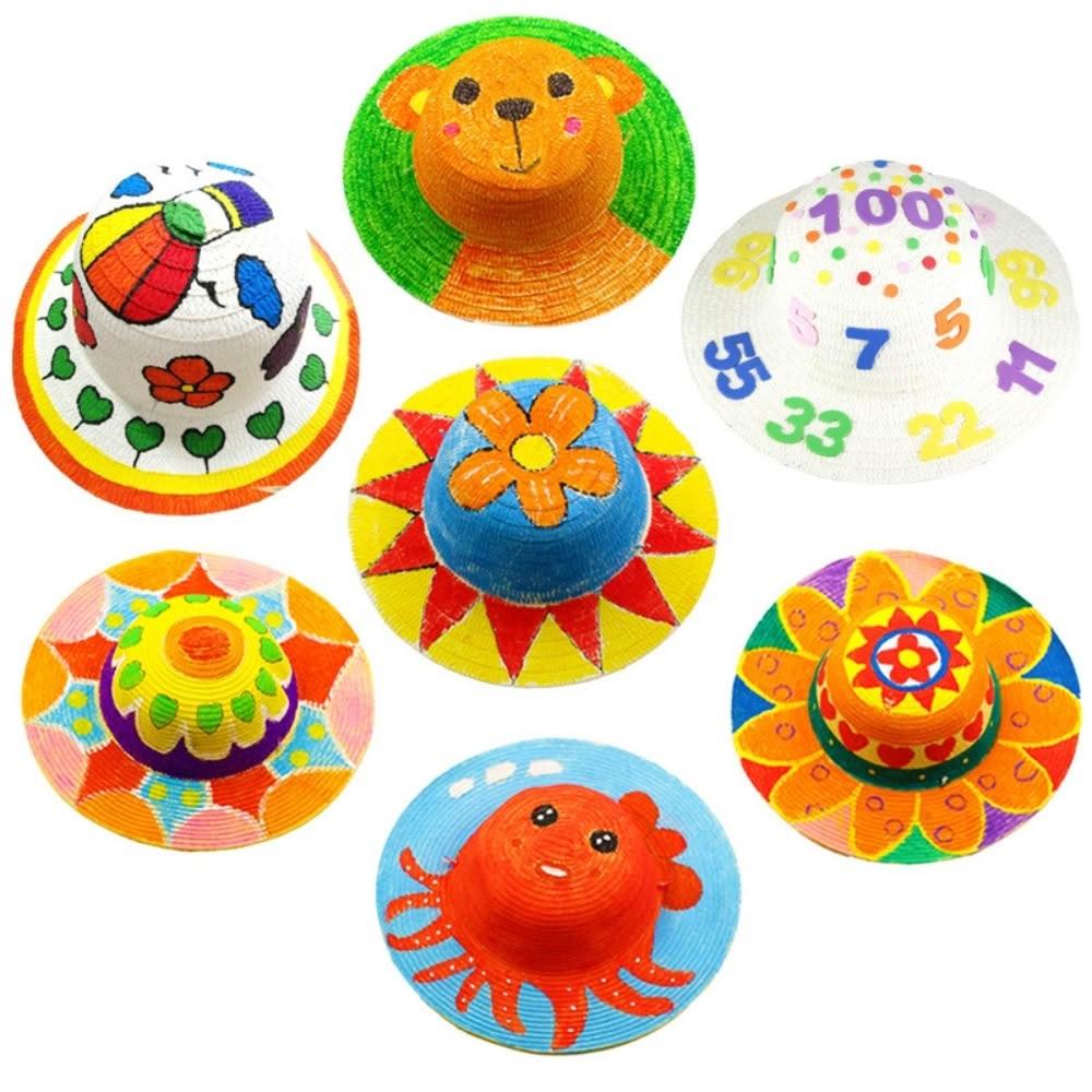 DIY彩繪草帽|兒童彩繪diy帽子 幼兒園著色草帽 DIY繪畫草帽 美勞手作 塗鴉帽子