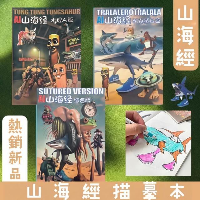 AI山海經素描本|填色繪畫本 塗鴉本 摹繪畫圖冊 兒童學畫畫素描本 通通哥木棍人