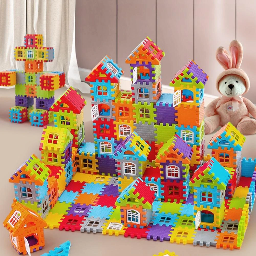 彩窗房子積木【63片】袋裝|大號房子拚裝積木全套積木立體方塊 立體房屋積木組 可開窗設計 DIY創意拼搭 積木玩具 彩窗