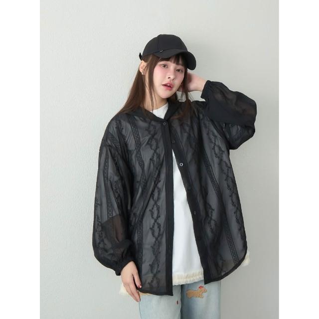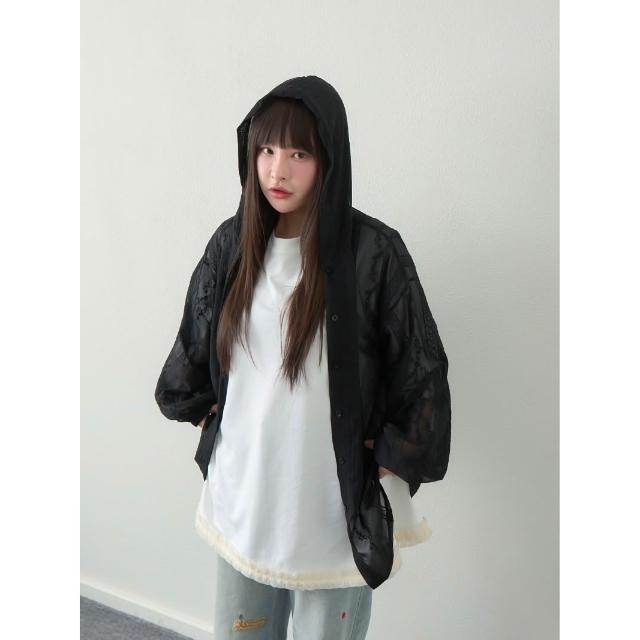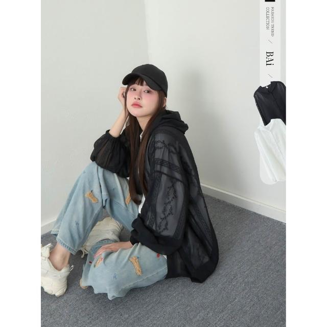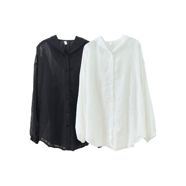 BAi 白媽媽緹花雪紡連帽襯衫/半透繡花開釦外套-356009 現貨+預購