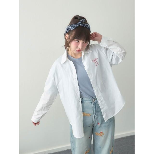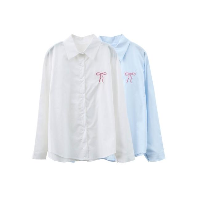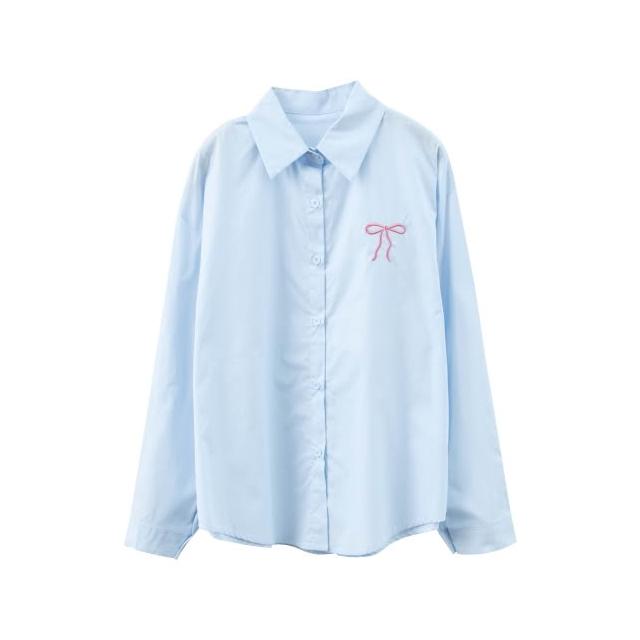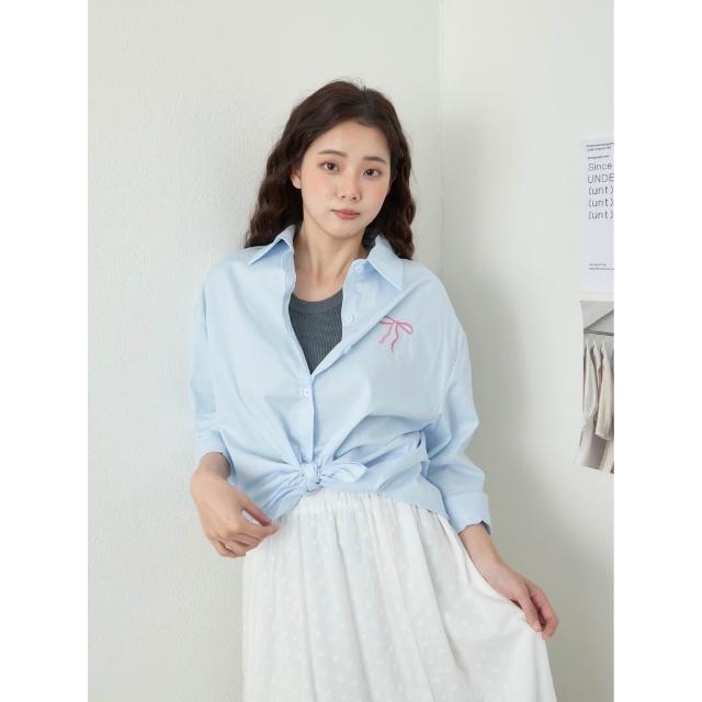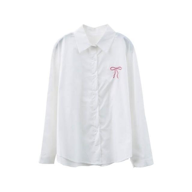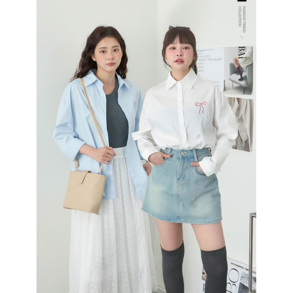 BAi 白媽媽蝴蝶結小繡圖襯衫/素面長袖開衫-350087 現貨+預購