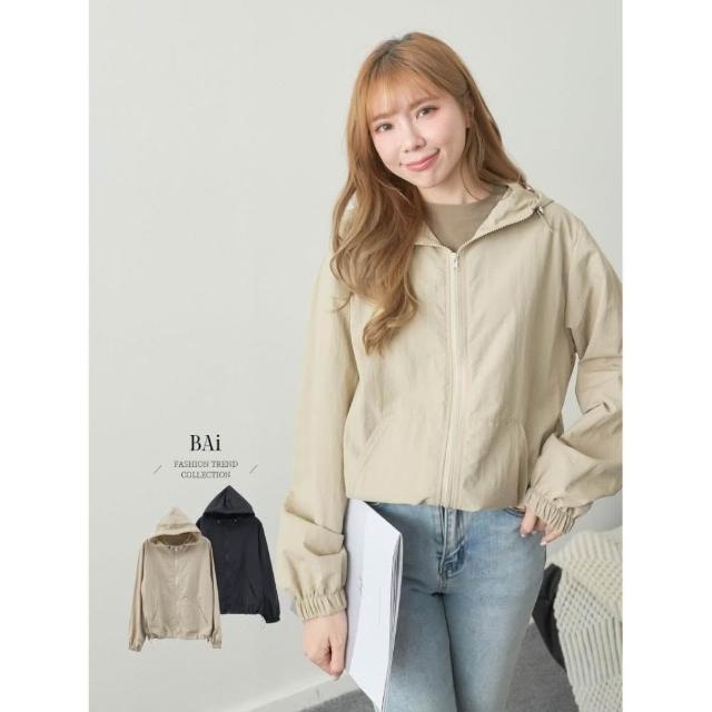 BAi 白媽媽薄款拉鏈連帽外套/立領彈力抽繩防風夾克-350057 現貨+預購
