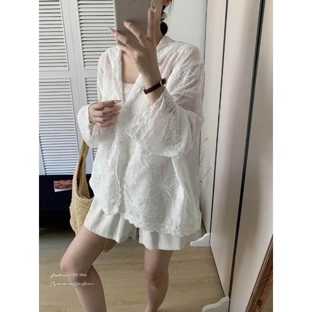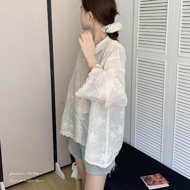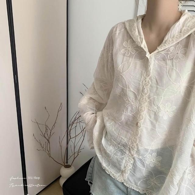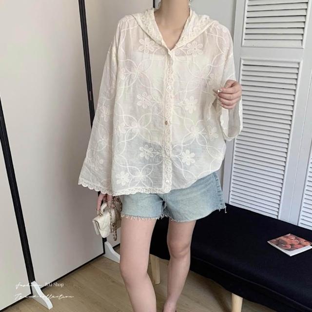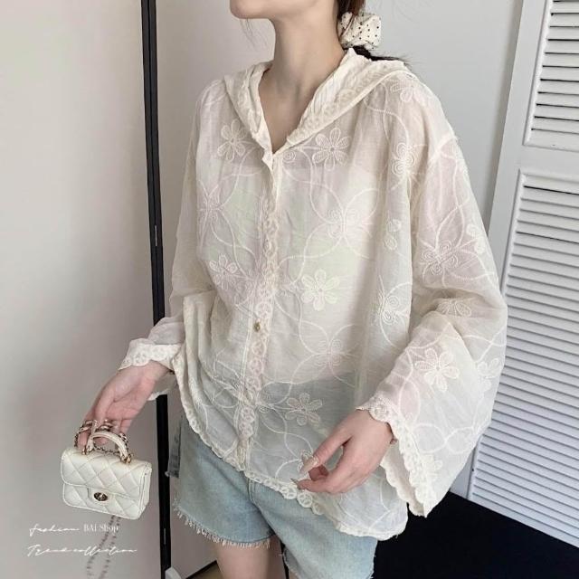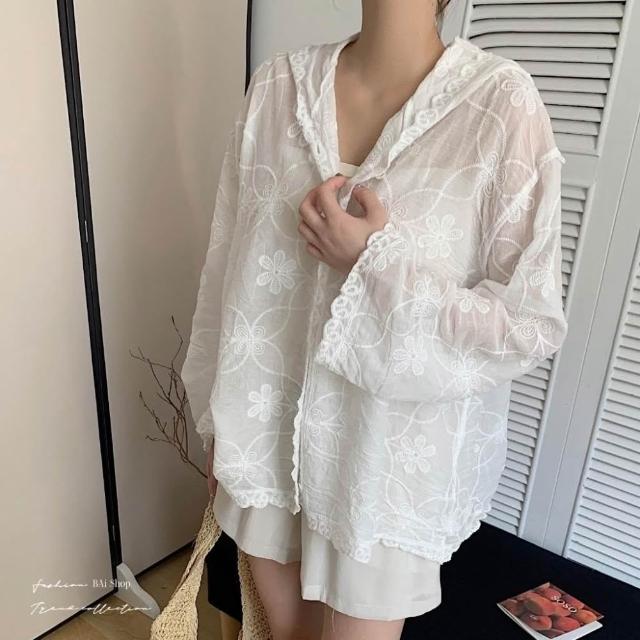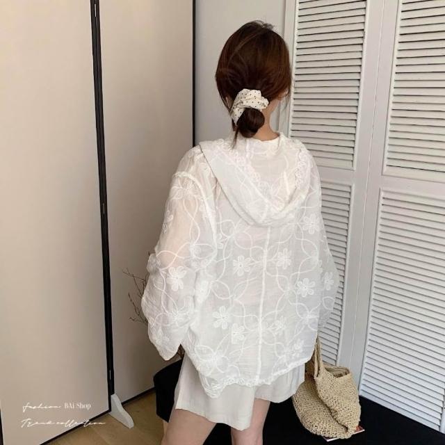 BAi 白媽媽刺繡花朵連帽衫/鈎花寬鬆防曬 Outerwear-350516 現貨+預購
