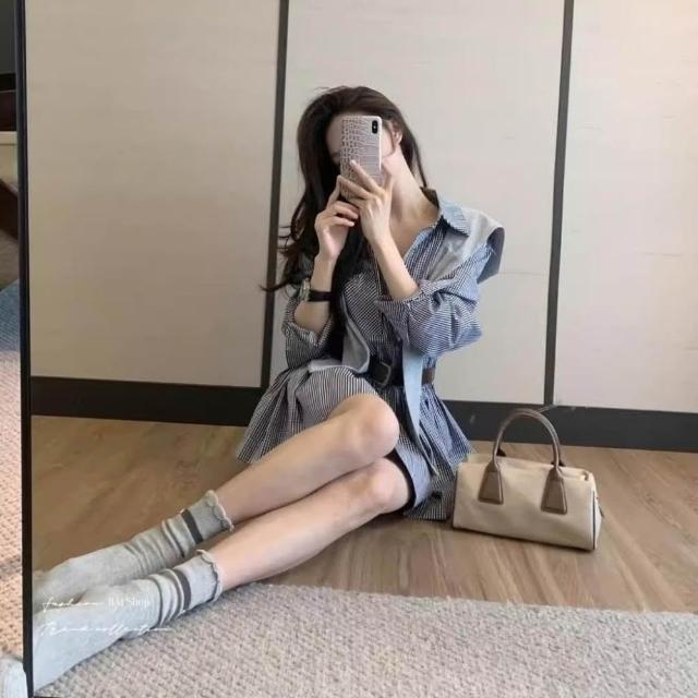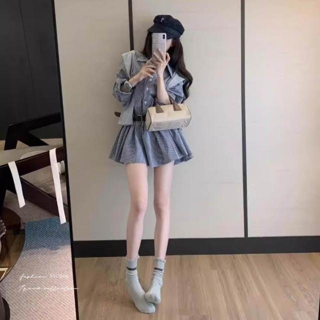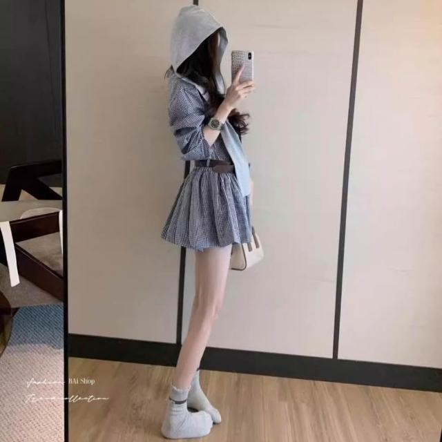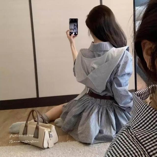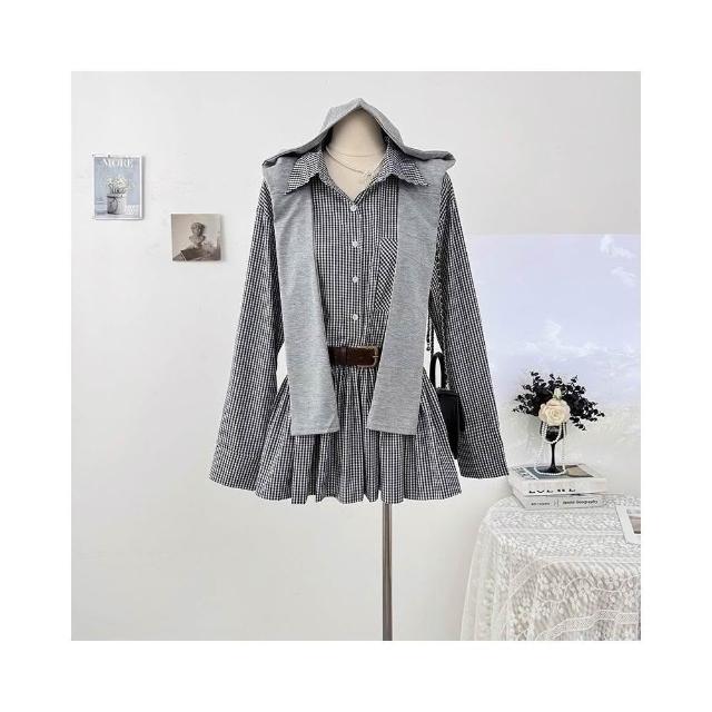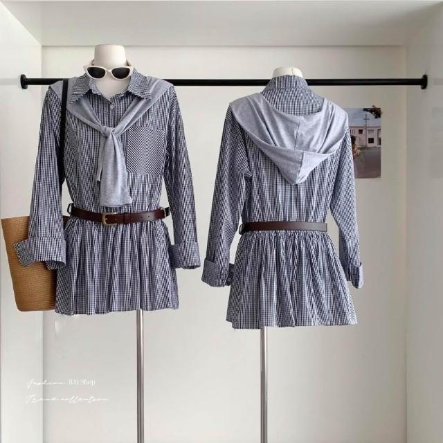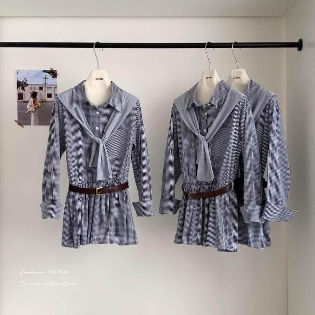BAi 白媽媽三件套格紋洋裝/附腰帶與披肩- 350518 現貨+預購