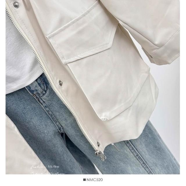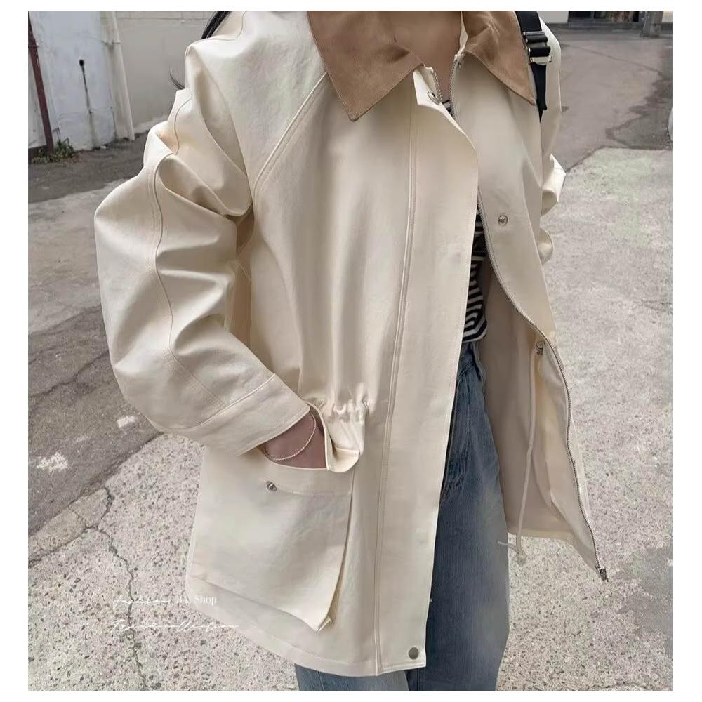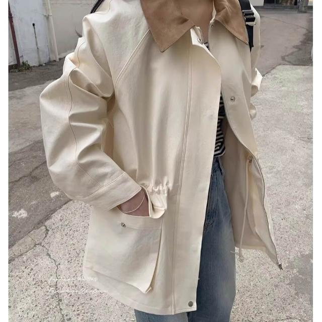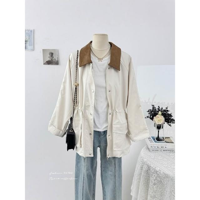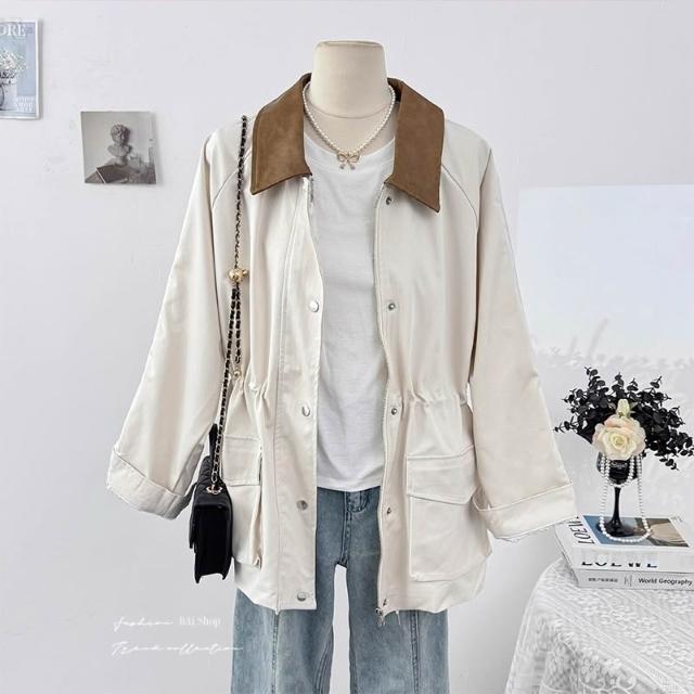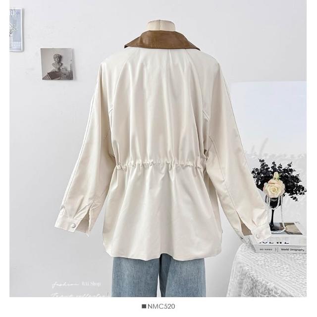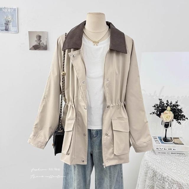 BAi 白媽媽撞色領外套/韓系中長款風衣夾克-350582 現貨+預購